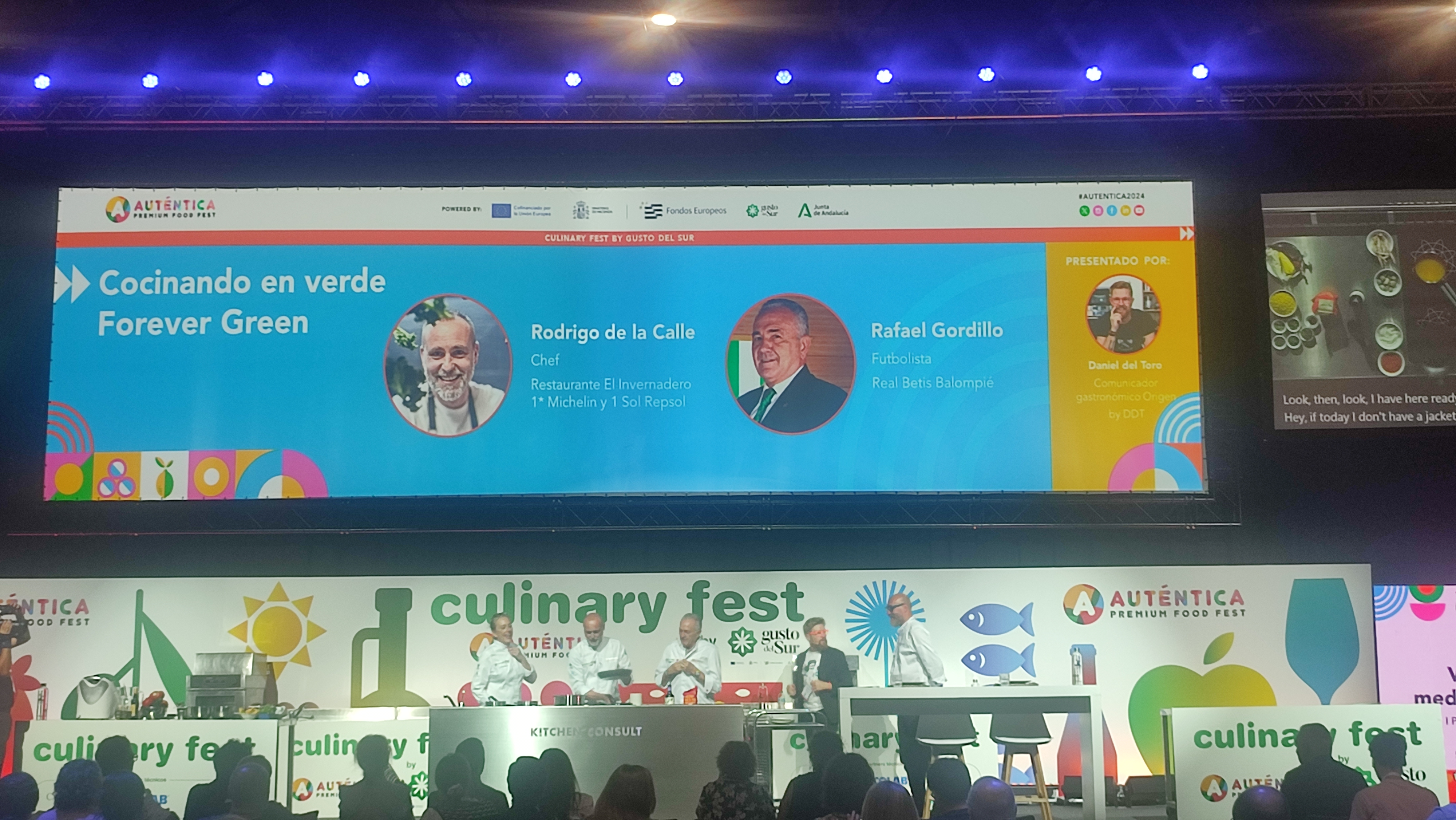La relación entre deporte y gastronomía continuó con la colaboración de Rodrigo de la Calle, chef de El Invernadero (una estrella Michelin y un sol Repsol), y Rafael Gordillo, exfutbolista del Real Betis Balompié, quienes discutieron sobre sostenibilidad en "Cocinando en verde: Forever Green".