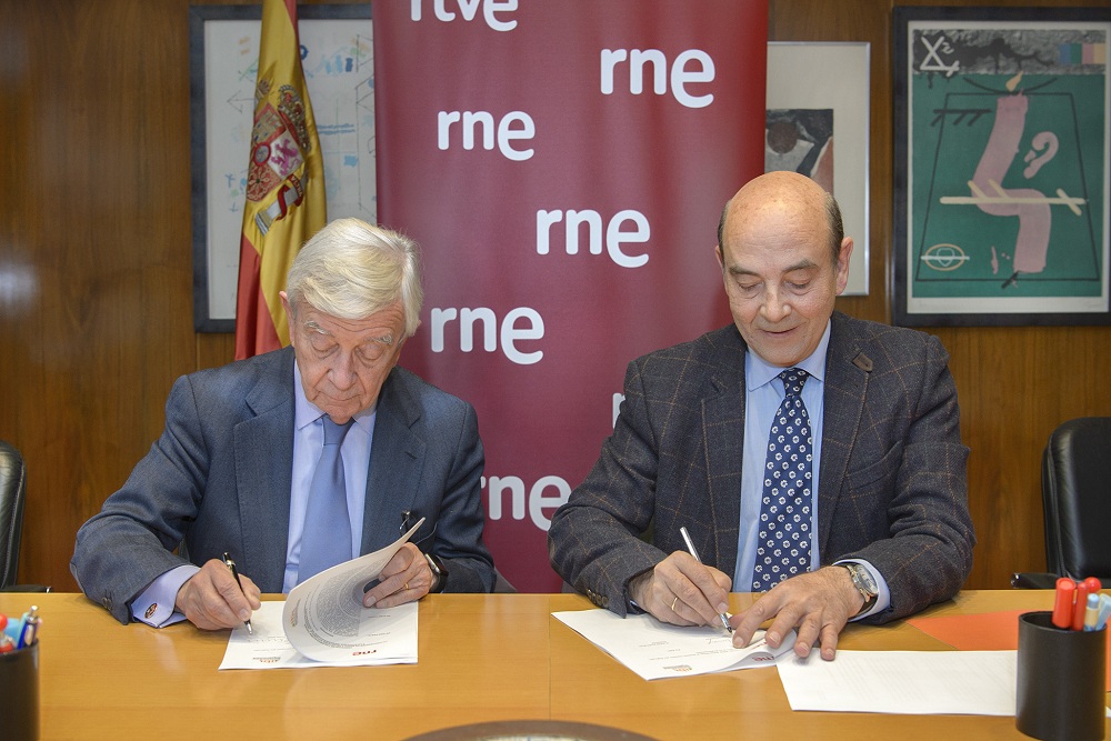 El presidente de la Academia Iberoamericana de Gastronomía, Rafael Ansón, y el director de Radio Nacional de España, Alfonso Nasarre, han suscrito hoy un convenio de colaboración entre ambas instituciones para difundir la cultura gastronómica en el ámbito iberoamericano, promover el interés en beneficio de la salud y estrechar lazos de cooperación internacional y solidaridad.