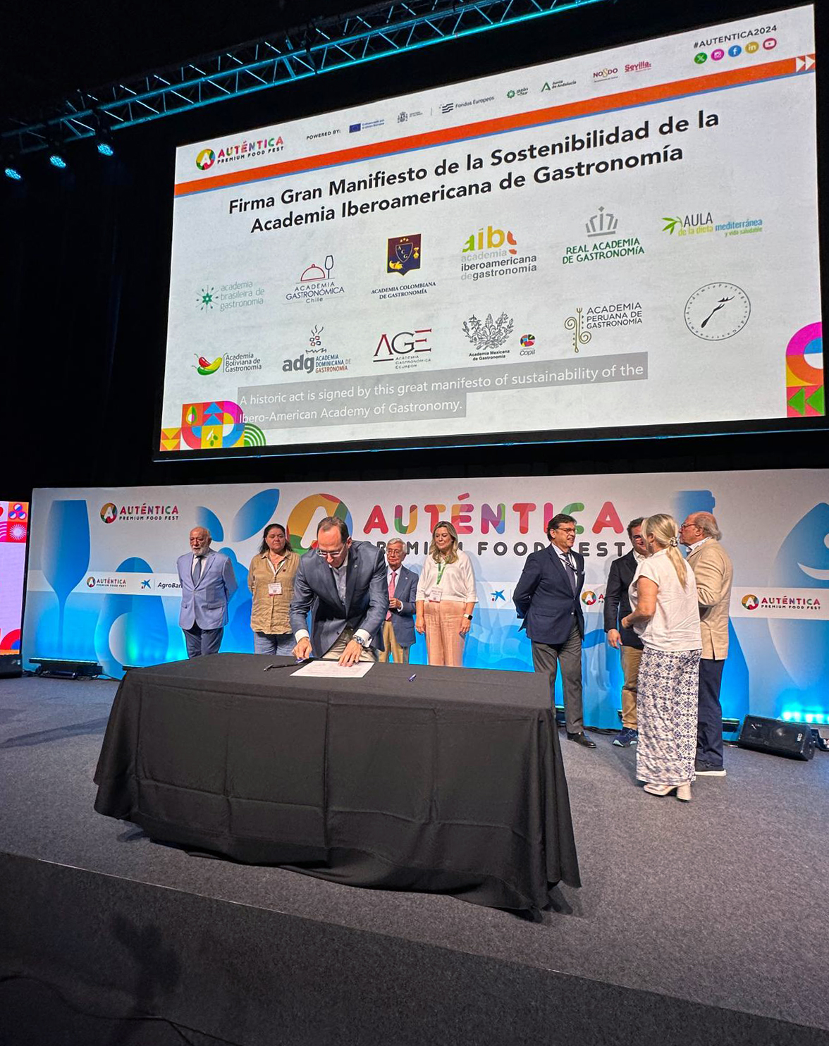 En el marco de la celebración de “Sevilla/Andalucía, Capital Iberoamericana de la Gastronomía Sostenible 2024-2025”, durante la última jornada de la feria Auténtica Premium Food Fest 2024, y dando seguimiento al Manifiesto de la Nueva Gastronomía del Siglo XXI, las 17 Academias Nacionales que actualmente integran la AIBG, firmaron un “Manifiesto Universal de la Gastronomía Sostenible”.