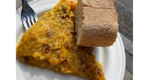 Pintxo de tortilla de patata de El Cañadío, nombrada como la mejor tortilla de patatas de España 2023