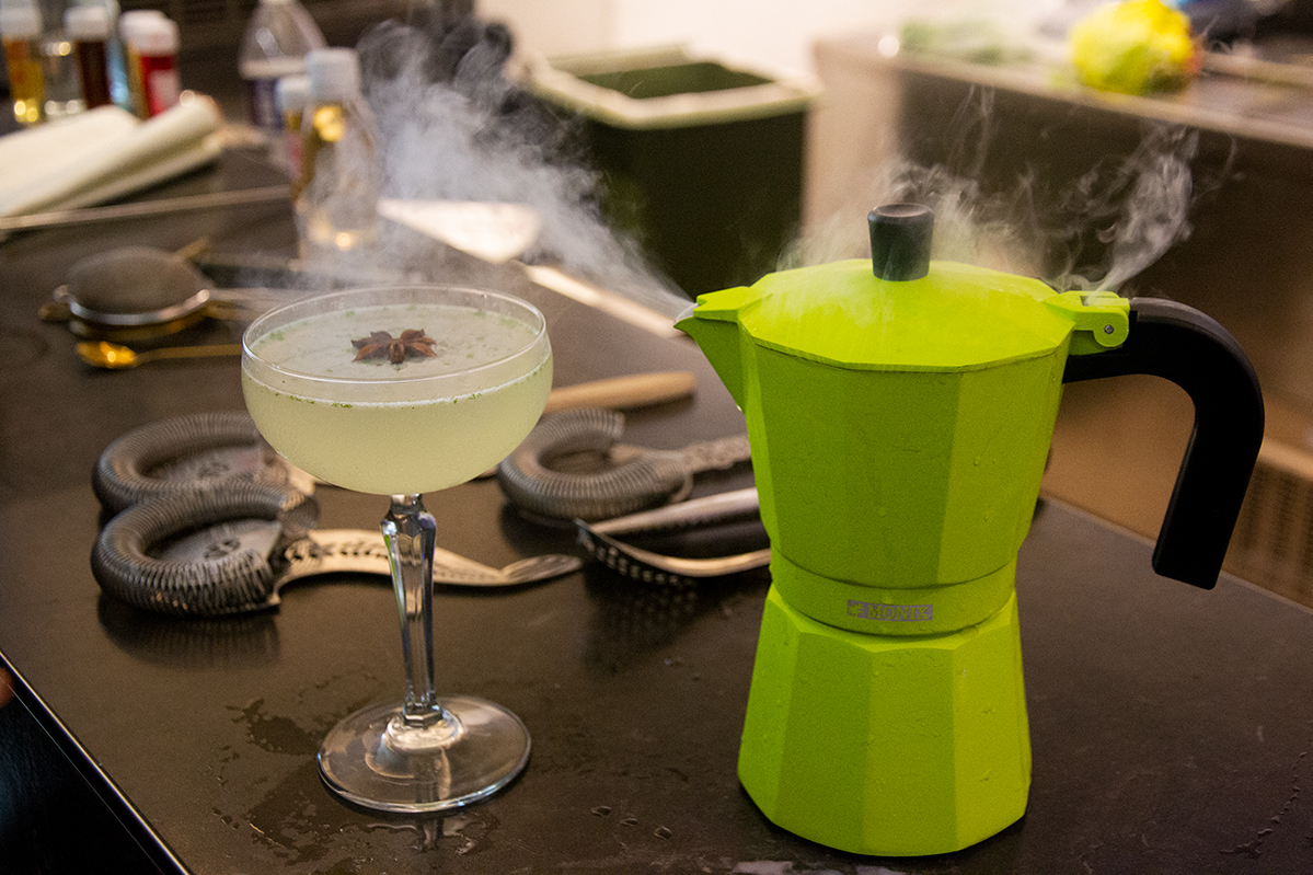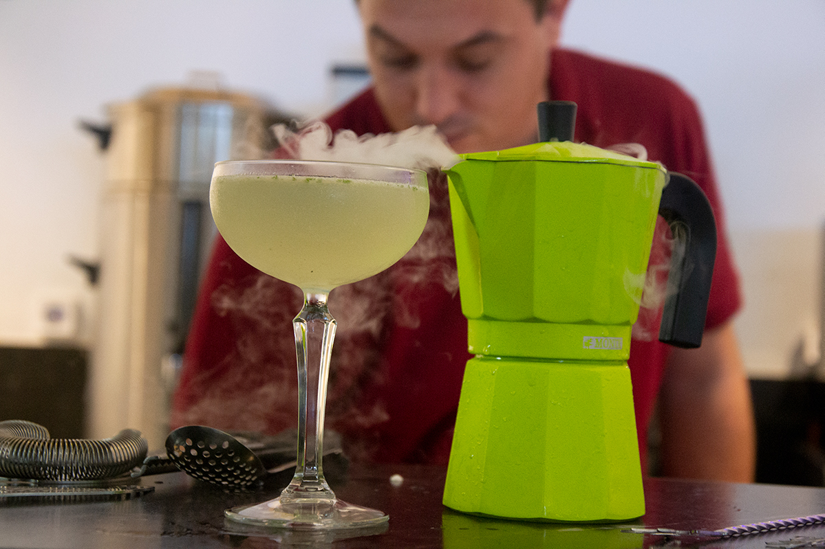A ver la vida con ojos de barman invitaron hoy como punto de partida para la inspiración, a llevar las cosas a su propia realidad profesional, a no dejar la creatividad y a experimentar con los objetos y materiales que tenemos cerca, transformarlos, mirarlos más allá de para lo que fueron creados. Esto se vio llevado a la práctica cuando realizaron el coctel Ginger Fresh con el curioso uso que le dieron a la cafetera, por ejemplo.