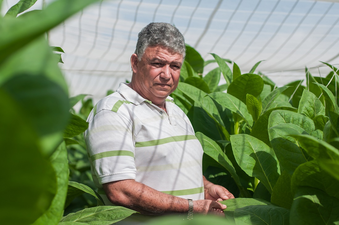 Tras vencer poco más de 10 km desde su casa al trabajo, a las seis y cuarto de la mañana llega a la UBPC Batalla de las Guácimas, donde se desempeña como su presidente hace décadas. Esta entidad es la mayor productora del paño de exportación del país: siembra 101 ha y produce casi 200 toneladas de tabaco, 50 de ellas corresponden a la referida capa que visten los Habanos que recorren el mundo.