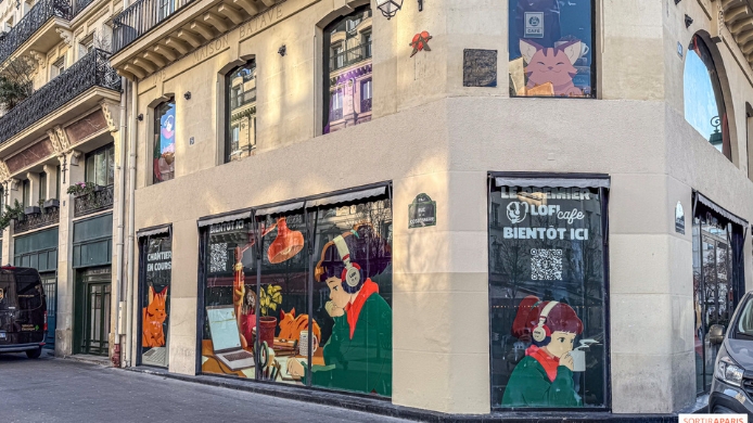 La ubicación exacta del establecimiento es la calle Saint-Denis, cerca del Centro Pompidou y la catedral de Notre Dame. Su estética evoca su habitación con vistas a las colinas de la Croix-Rousse, en Lyon. El espacio está pensado como un refugio urbano donde trabajar, estudiar, leer o simplemente relajarse, siempre acompañado de música lo-fi. Zonas tranquilas, mesas amplias, iluminación cálida y una atmósfera acogedora buscarán trasladar su historia virtual al plano físico.