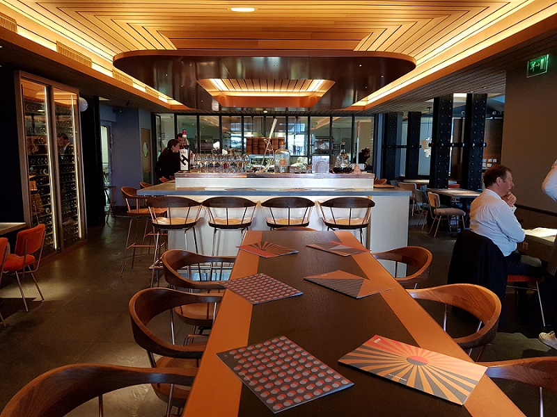 Sentados en una mesa de su comedor, decorado por Jean-Michel Wilmotte, el chef delegado por Alain Ducasse, Robin Sanchez y su equipo de cocina, representado por profesionales de la restauración venidos de diferentes países y continentes, los comensales tiene la oportunidad de descubrir y disfrutar de platos culinarios con identidad propia tan dispares como pueden ser el panqueque chino; la torta de camarones y el bonito de Taiwán; el mango quemado, aguacate y cilandro de Brasil; y la ternera con pimienta verde de Japón.
