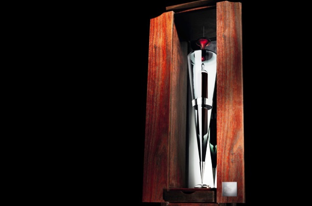 Entre las razones del alto precio de este vino está el embotellado especial que realizó el artista Nick Mount con la inapreciable ayuda del experto en soplado Ray Laerke y, especialmente, que la bodega únicamente pone a la venta 12 botellas... ¡por década!