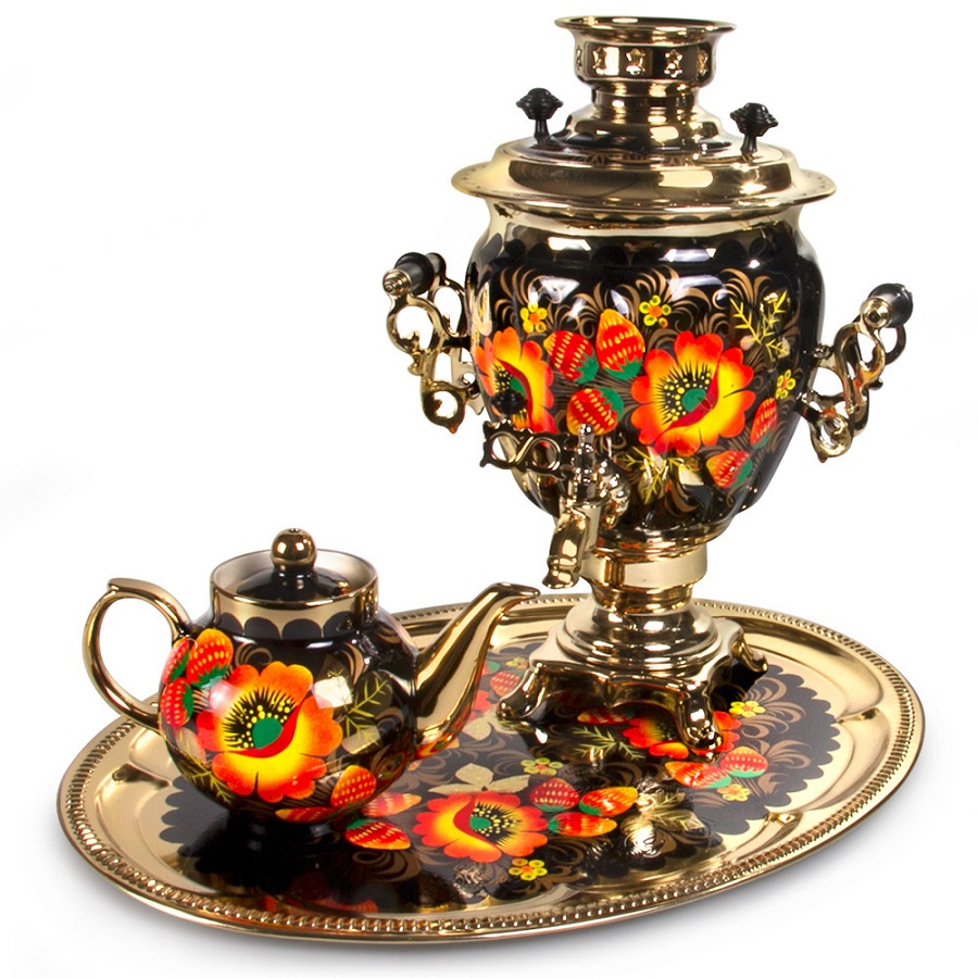 Los samovares actuales, hechos de hojalata con resistencia eléctrica, contrastan con los tradicionales de carbón que se usaban para hervir agua y preparar té en Rusia. Sobre el samovar se coloca una tetera con un extracto concentrado de té, que luego se diluye con agua caliente del propio samovar al servirse.
